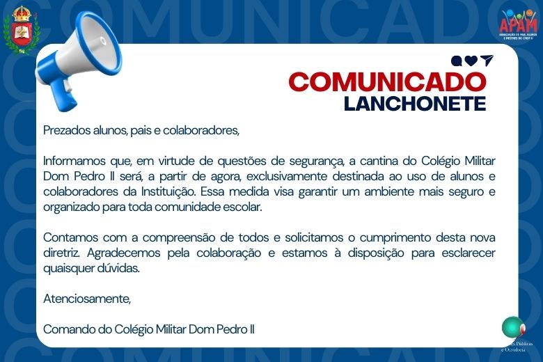 Home Diversos COMUNICADO IMPORTANTE – CANTINA