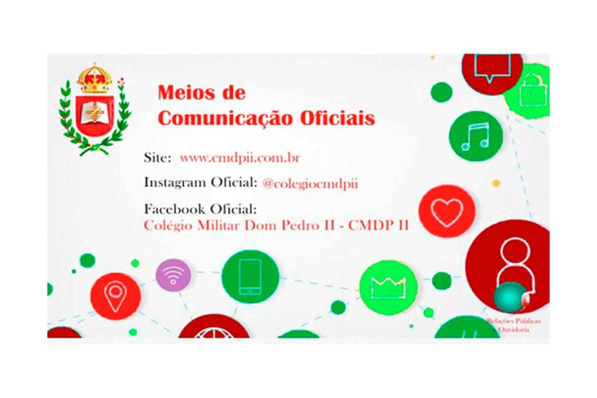 Senhores pais e responsáveis, o CMDP II informa que não utiliza outros meios de comunicação, como o WhatsApp, para que suas informações alcancem toda comunidade escolar, estes resumem-se aos meios oficiais da escola, sendo eles: Site, Facebook, Instagram e Escolaweb. Portanto, toda e qualquer informação se dará por meio destes canais, objetivando uma comunicação precisa e retilínea. Solicitações, elogios ou reclamações devem ser encaminhados via Escolaweb.